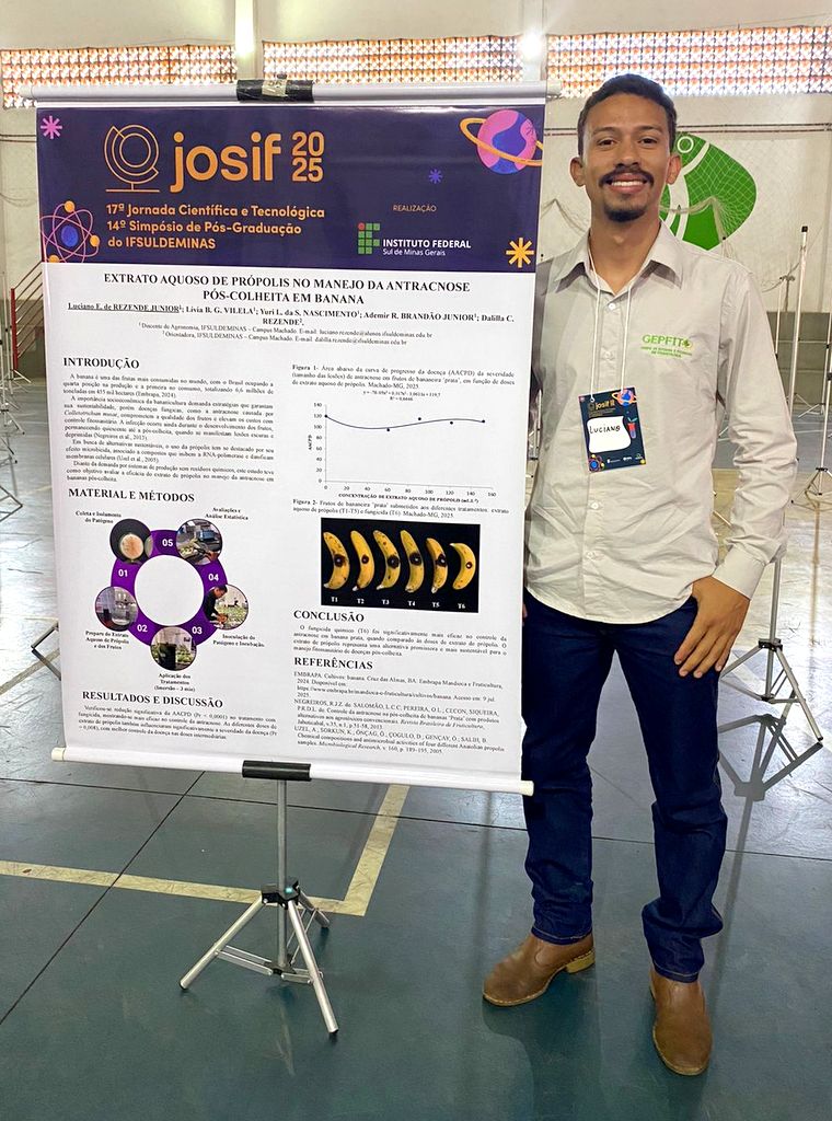 Entre os dias 5 e 7 de novembro, o IFSULDEMINAS – Campus Passos sediou a 17ª Jornada Científica (JOSIF) e o 14º Simpósio de Pós-Graduação. O Campus Machado marcou presença com mais de 100 participantes, entre estudantes e servidores, que expuseram trabalhos em formato de banner e em apresentações orais, além de participarem como ouvintes no evento.
