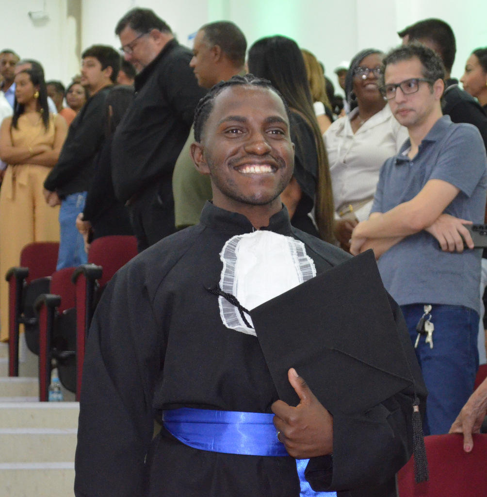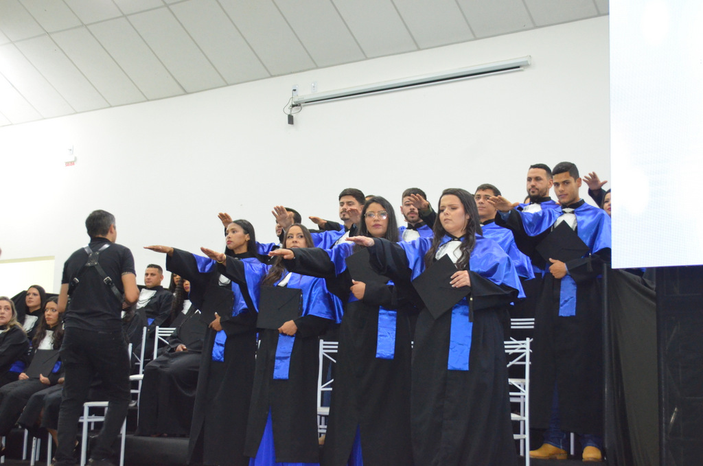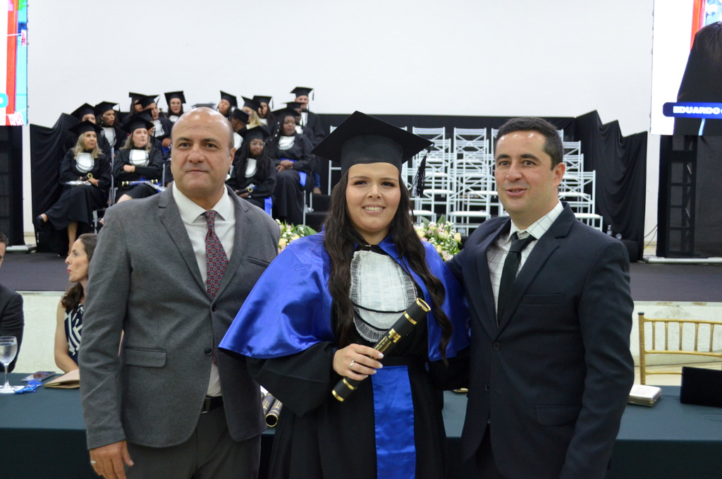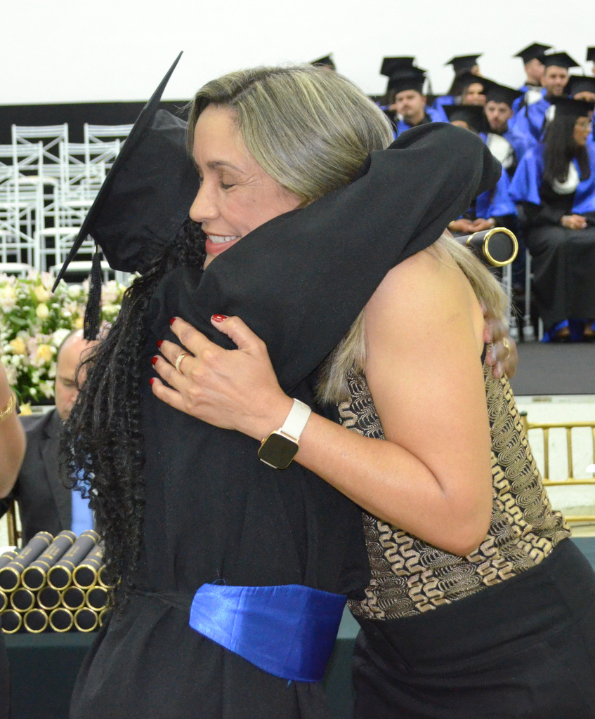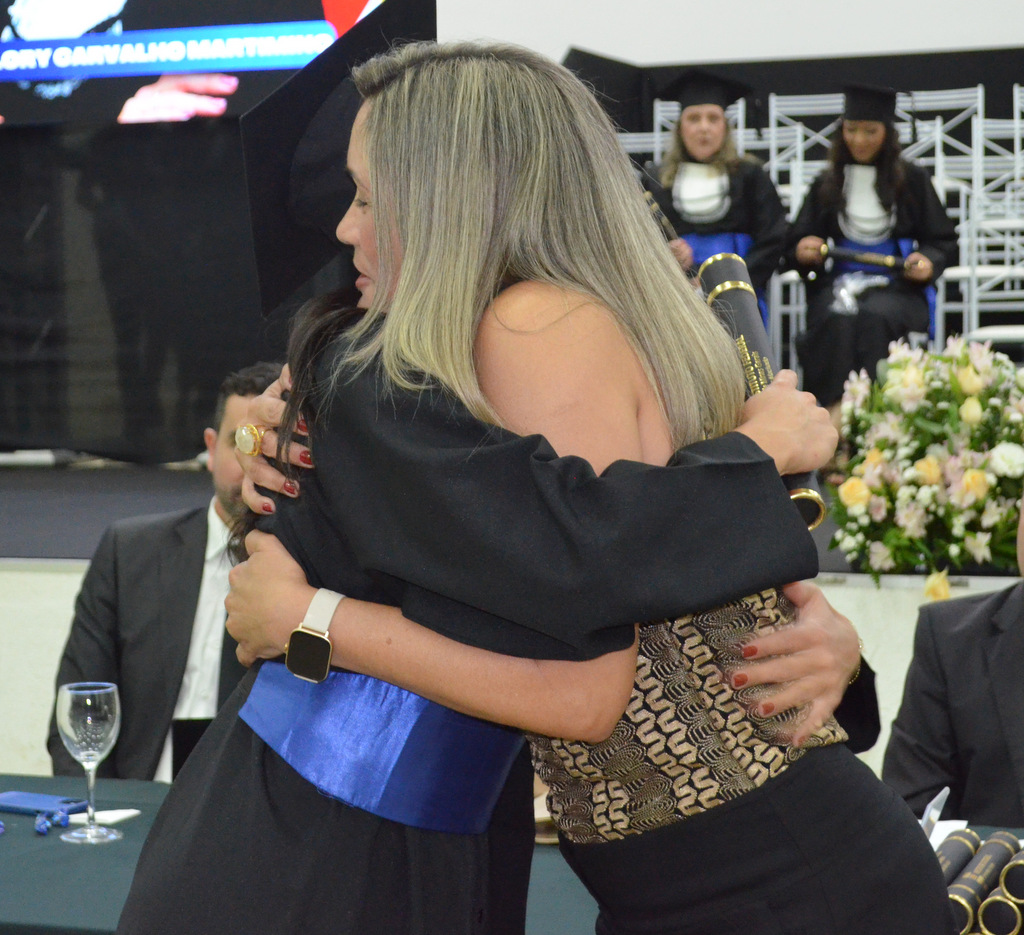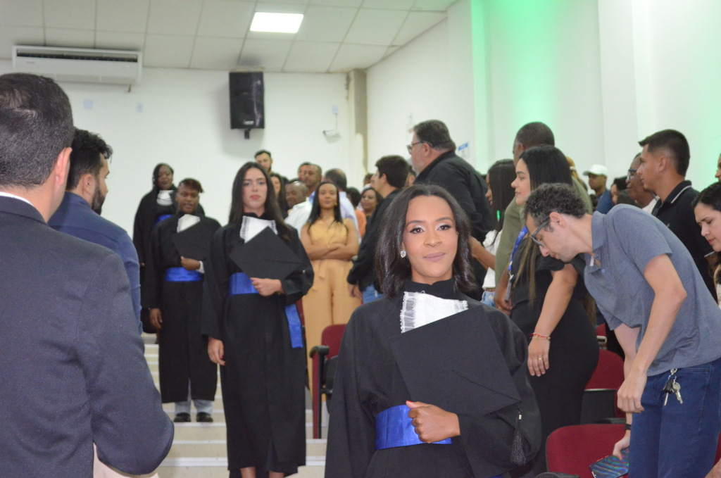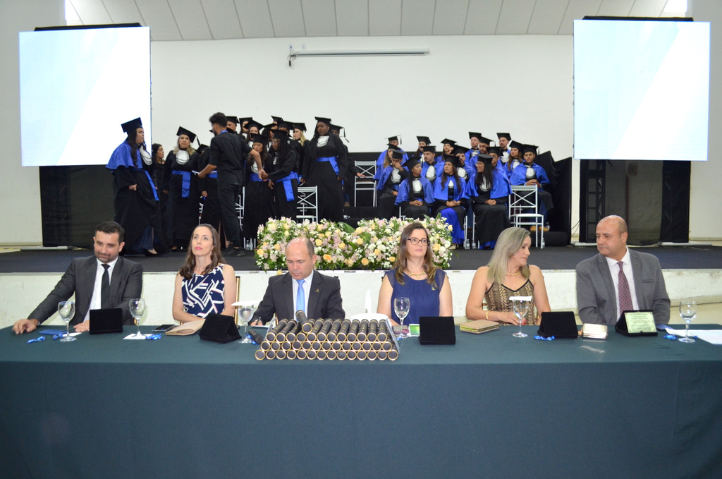 A solenidade terminou em clima de celebração, com a tradicional contagem regressiva e o lançamento dos capelos, simbolizando a conquista de uma etapa importante na vida acadêmica dos formandos.