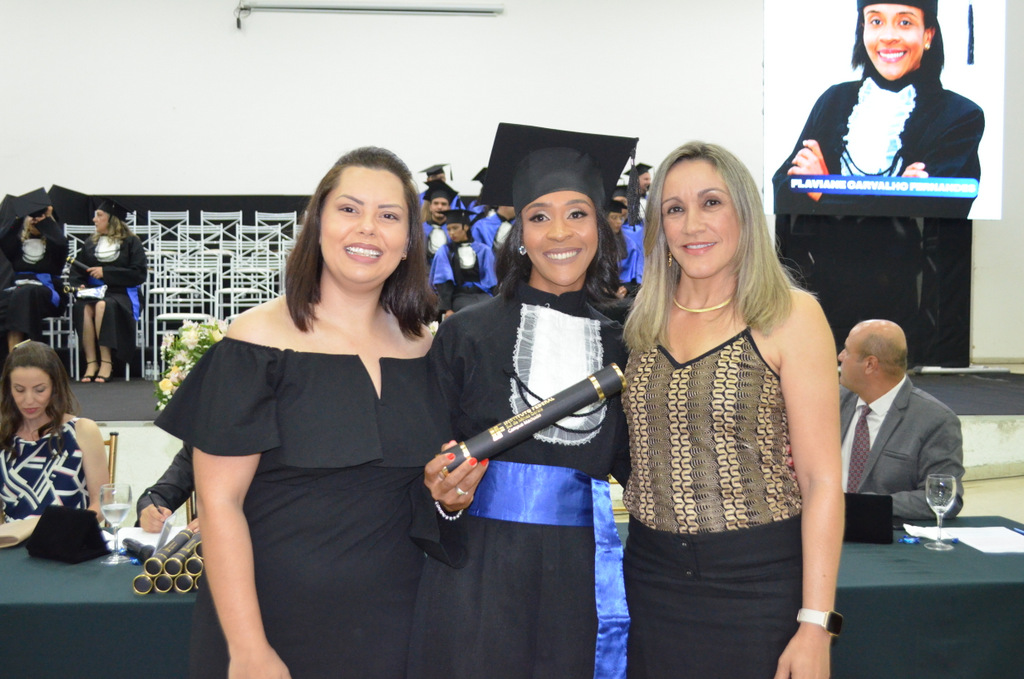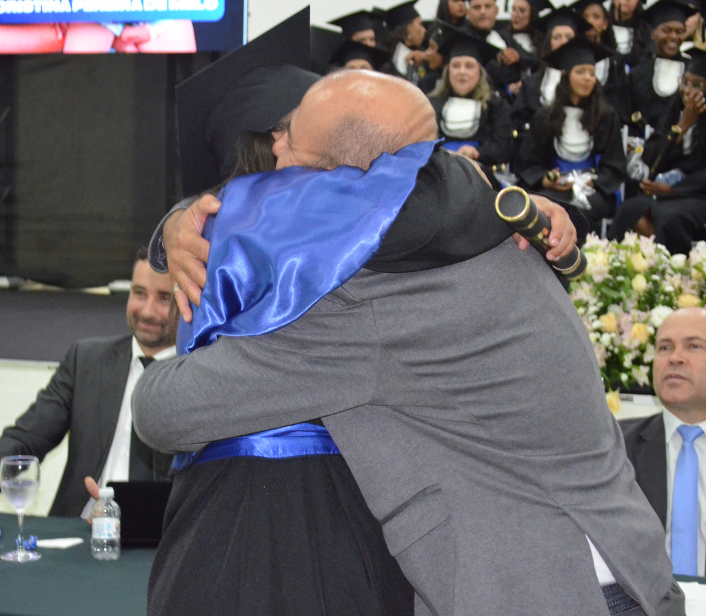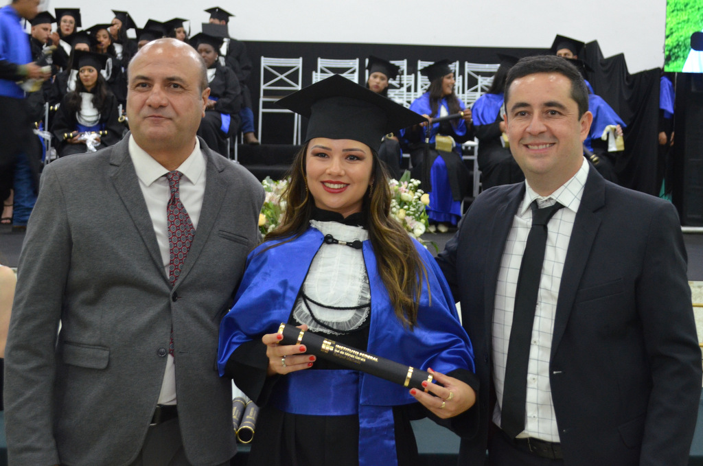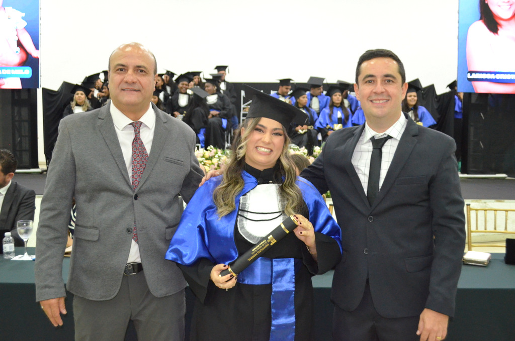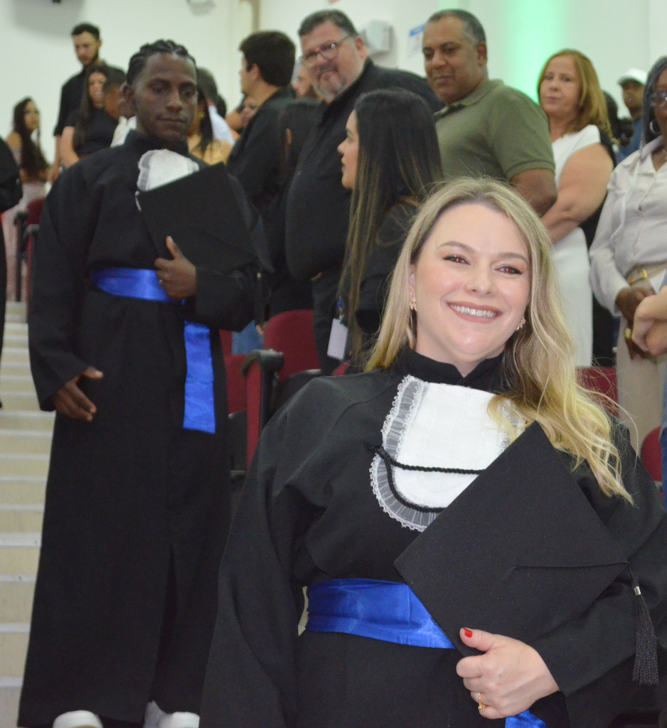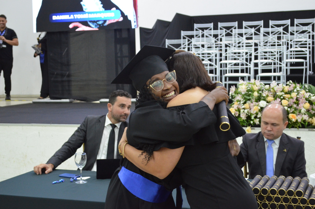 A solenidade terminou em clima de celebração, com a tradicional contagem regressiva e o lançamento dos capelos, simbolizando a conquista de uma etapa importante na vida acadêmica dos formandos.