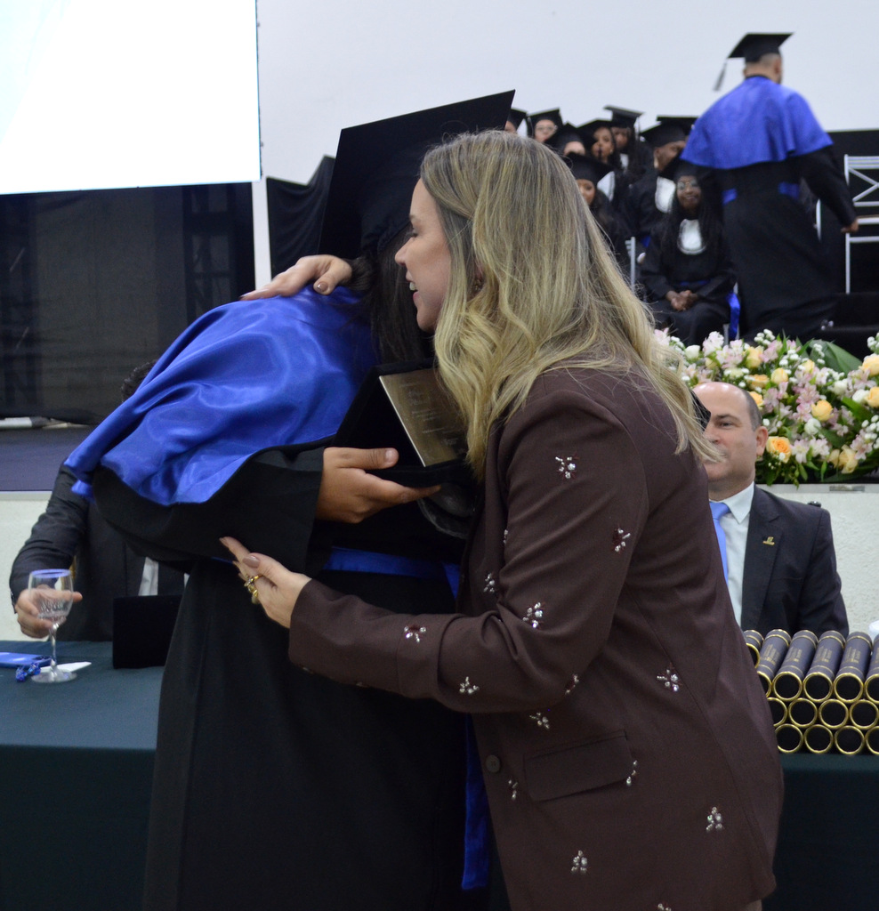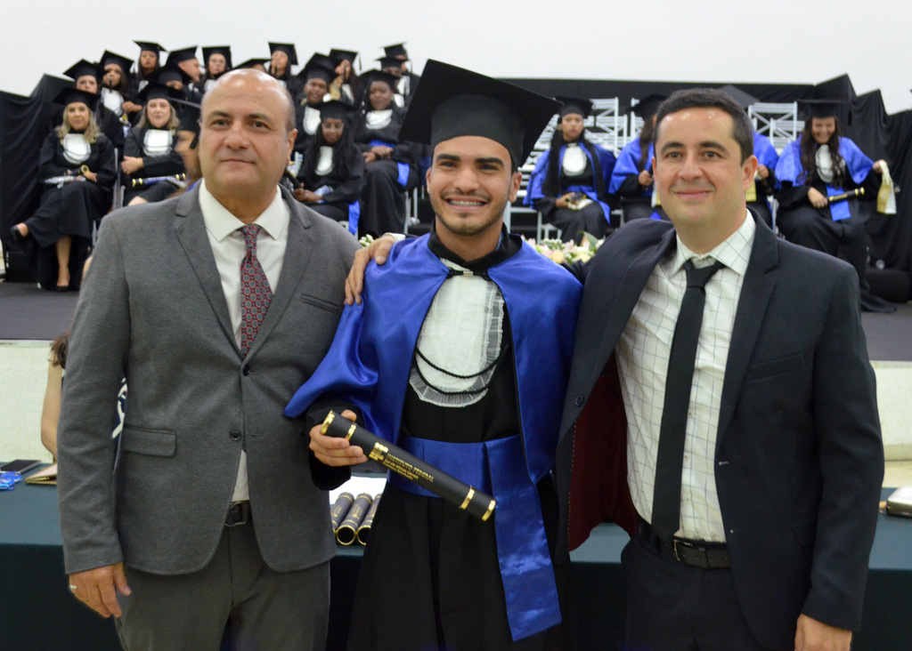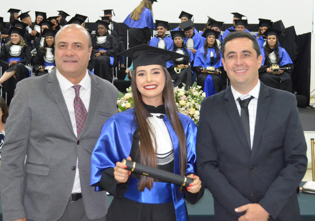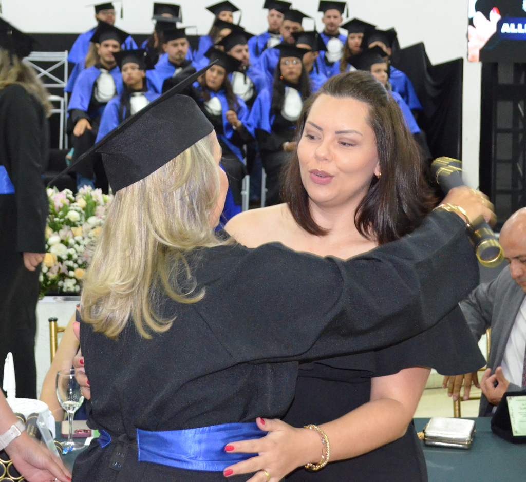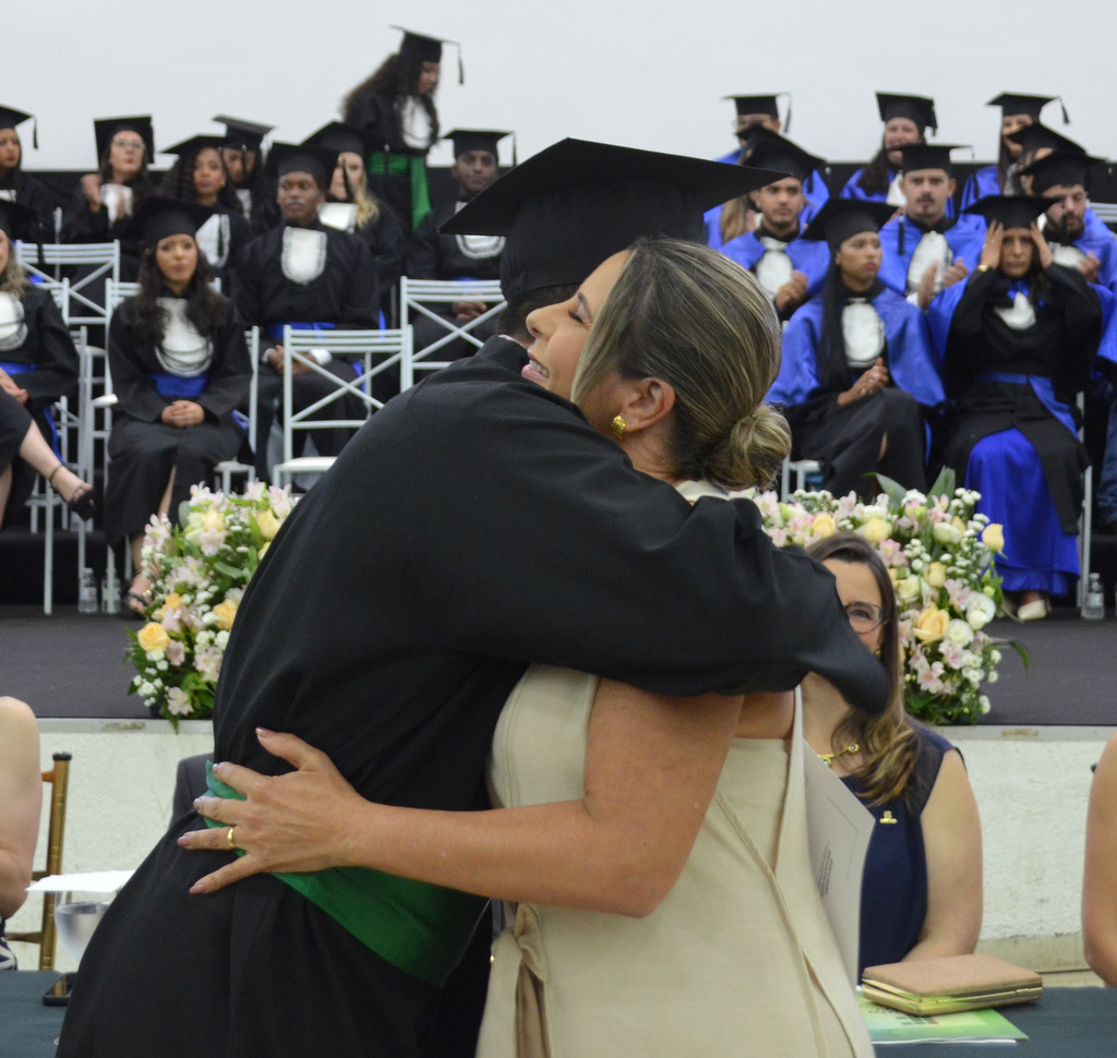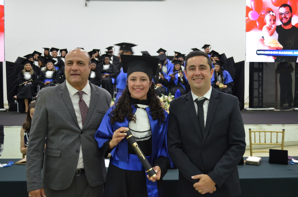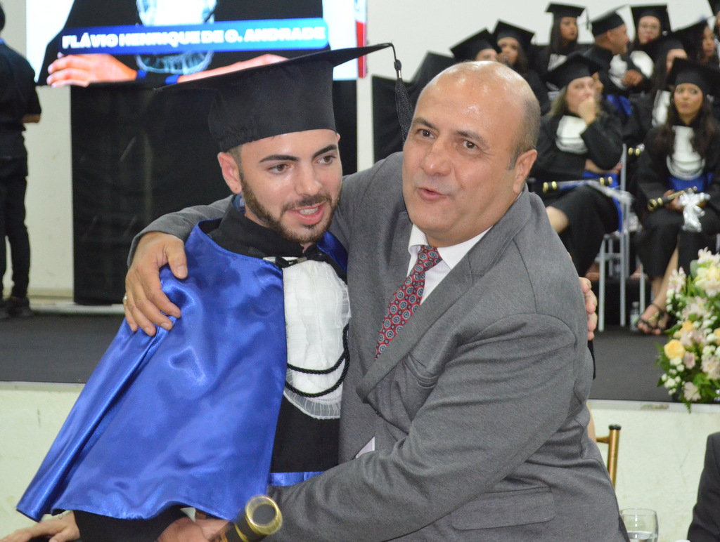 A solenidade terminou em clima de celebração, com a tradicional contagem regressiva e o lançamento dos capelos, simbolizando a conquista de uma etapa importante na vida acadêmica dos formandos.