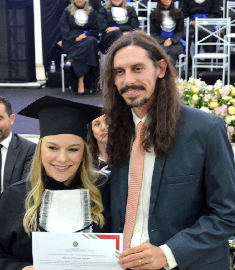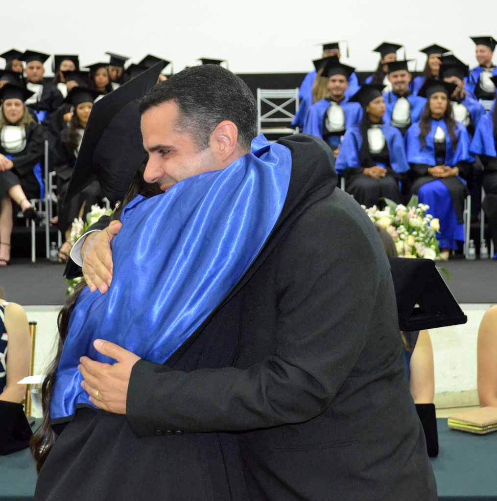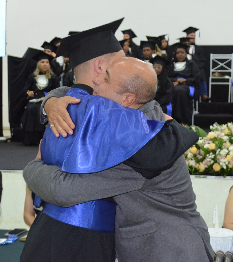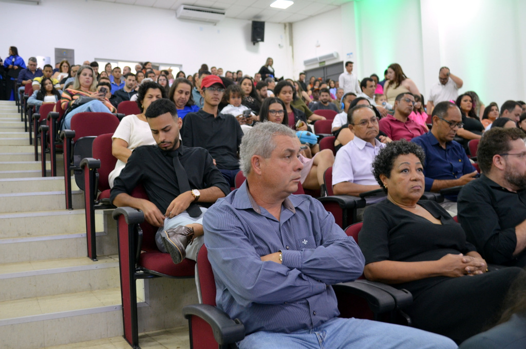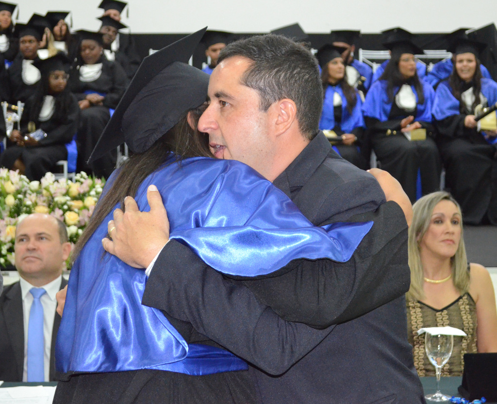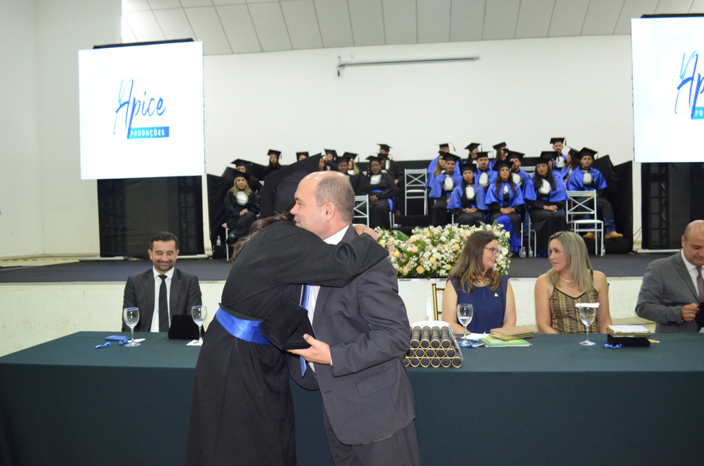 A solenidade terminou em clima de celebração, com a tradicional contagem regressiva e o lançamento dos capelos, simbolizando a conquista de uma etapa importante na vida acadêmica dos formandos.