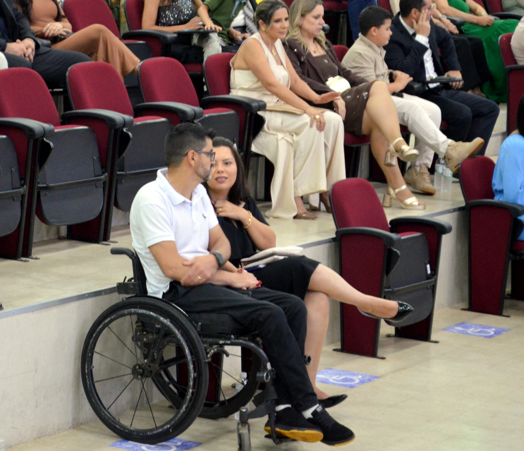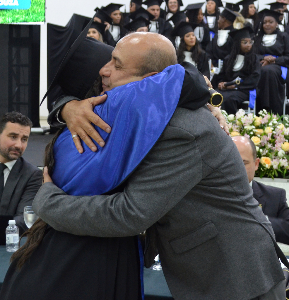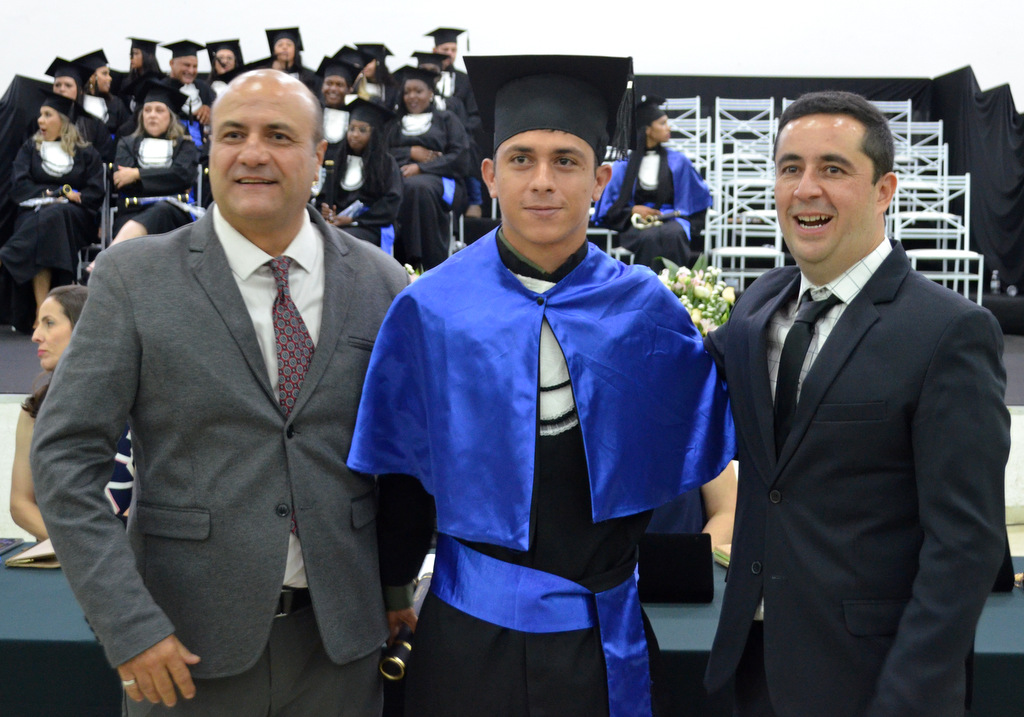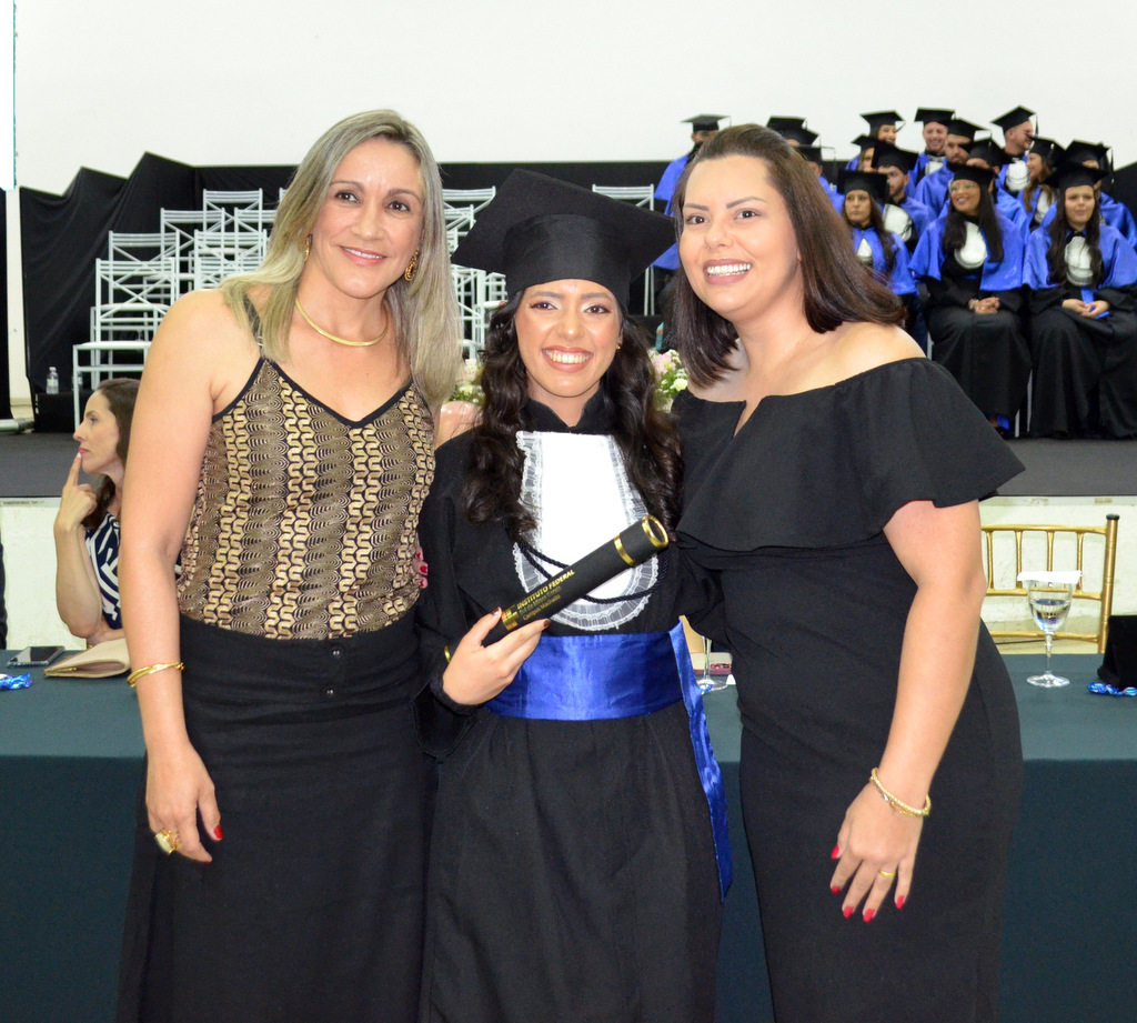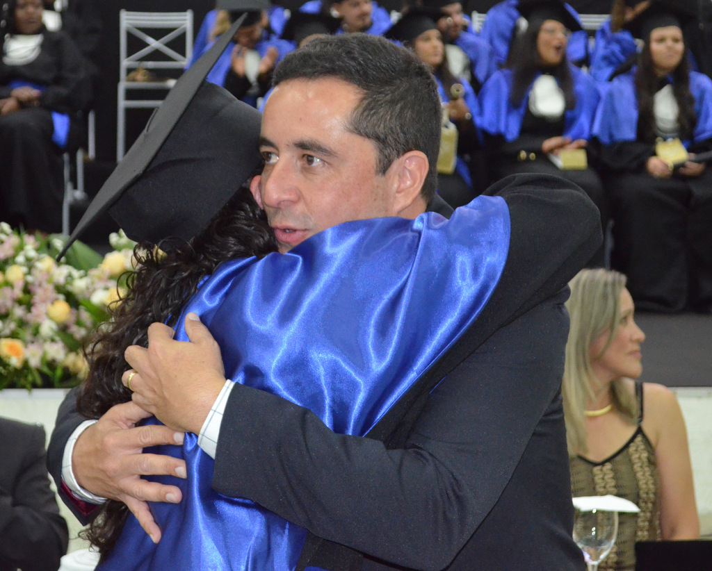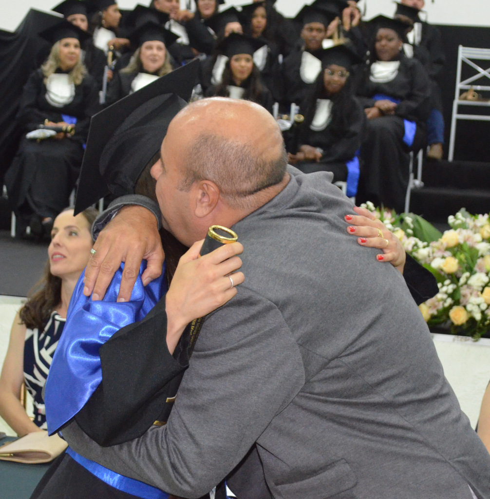 A solenidade terminou em clima de celebração, com a tradicional contagem regressiva e o lançamento dos capelos, simbolizando a conquista de uma etapa importante na vida acadêmica dos formandos.