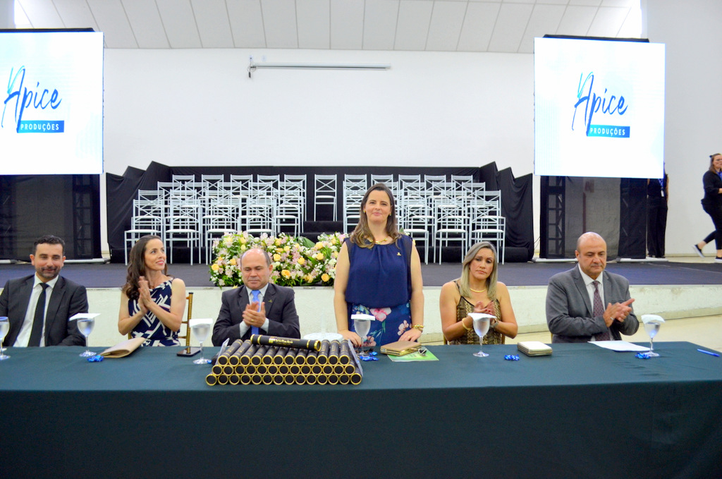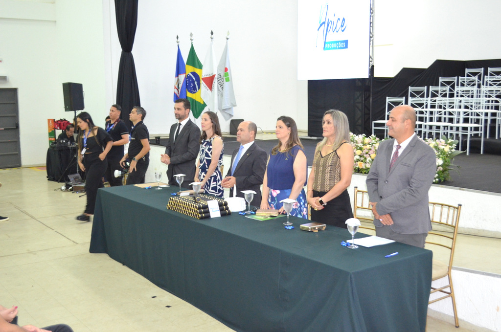 Os trabalhos foram abertos pela diretora-geral do Campus Machado, professora Aline Manke Nachtigall, e a mesa de honra foi presidida reitor do IFSULDEMINAS, professor Cléber Ávila Barbosa, e ocupada pelos paraninfos, professores Wellington Marota (Agronomia), Vanderson Rabelo (Técnico em Agropecuária) e Lidiany dos Santos Soares (Técnico em Administração), além da diretora de Ensino, professora Fabiana Lúcio de Oliveira.