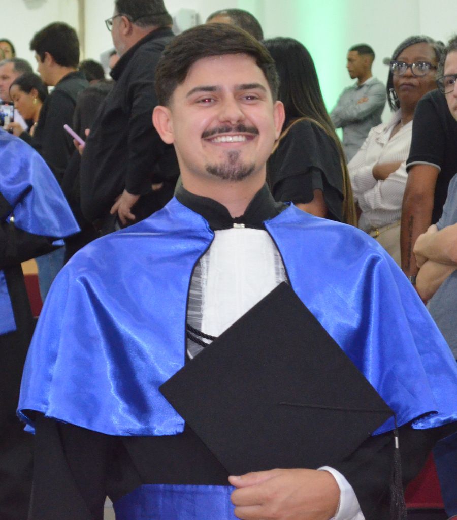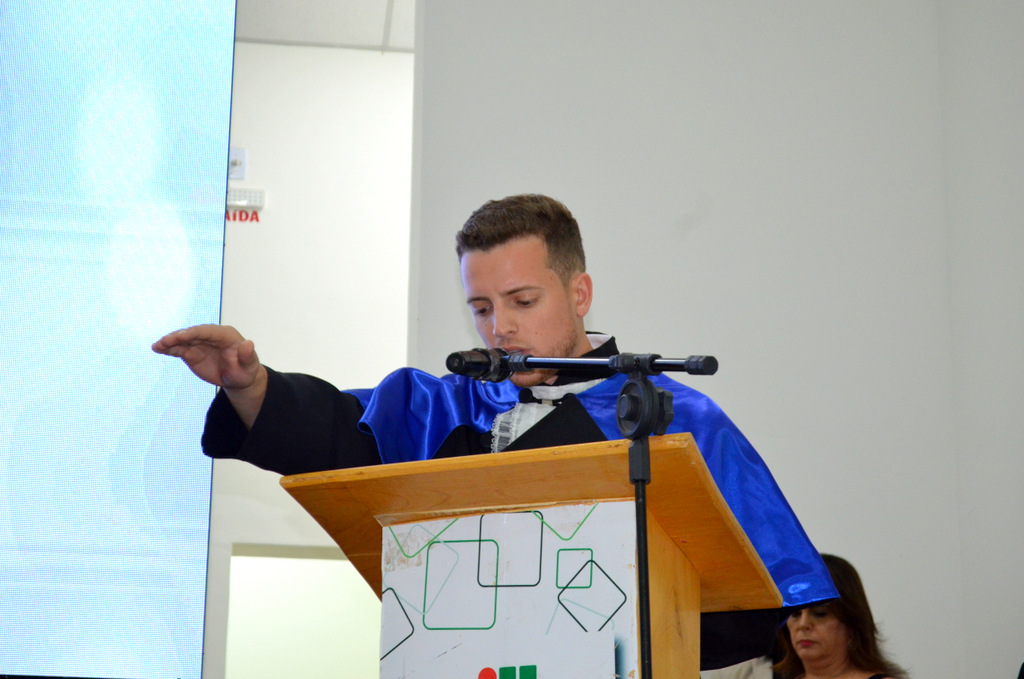 O formando Iago Lourença da Silva Santos foi orador do curso Técnico em Administração e trouxe um tom leve e descontraído, comparando a trajetória da turma a um “reality show da vida real”, repleto de desafios e superações. Destacou as dificuldades enfrentadas, como trabalhos em grupo, cálculos e relatórios, mas também os momentos de união e amizade. Ressaltou a garra dos colegas que conciliavam estudo, trabalho e família, mencionando inclusive os estudantes que se tornaram pais durante o curso.