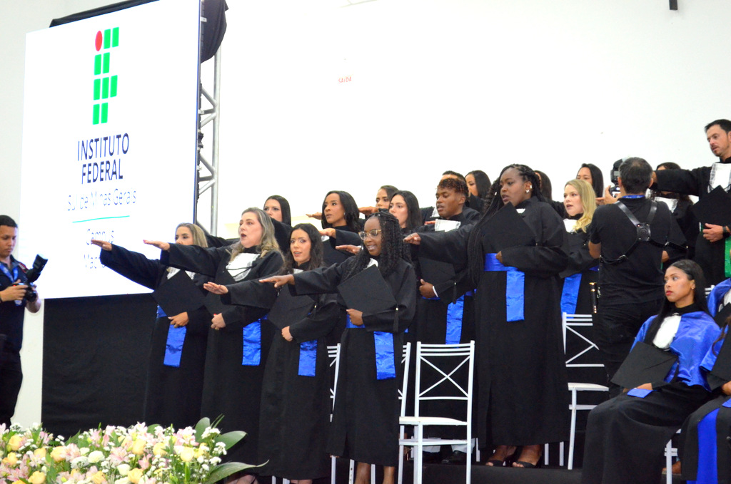 Na sequência, o reitor encerrou a cerimônia parabenizando os novos técnicos e bacharéis, desejando sucesso profissional e pessoal em suas novas jornadas. Ele destacou a alegria de retornar ao Campus Machado, onde viveu experiências marcantes como estudante e cultivou grandes amizades. Ele ressaltou que a formatura é um momento de “colheita”, fruto da dedicação dos formandos, do apoio de familiares, professores, técnicos e de toda a comunidade acadêmica. “O sentimento de dever cumprido paira no ar em um momento como este. Tenho certeza de que revigora nossas energias e nossa disposição em trabalhar cada vez mais em prol da educação.”