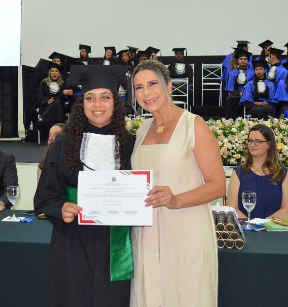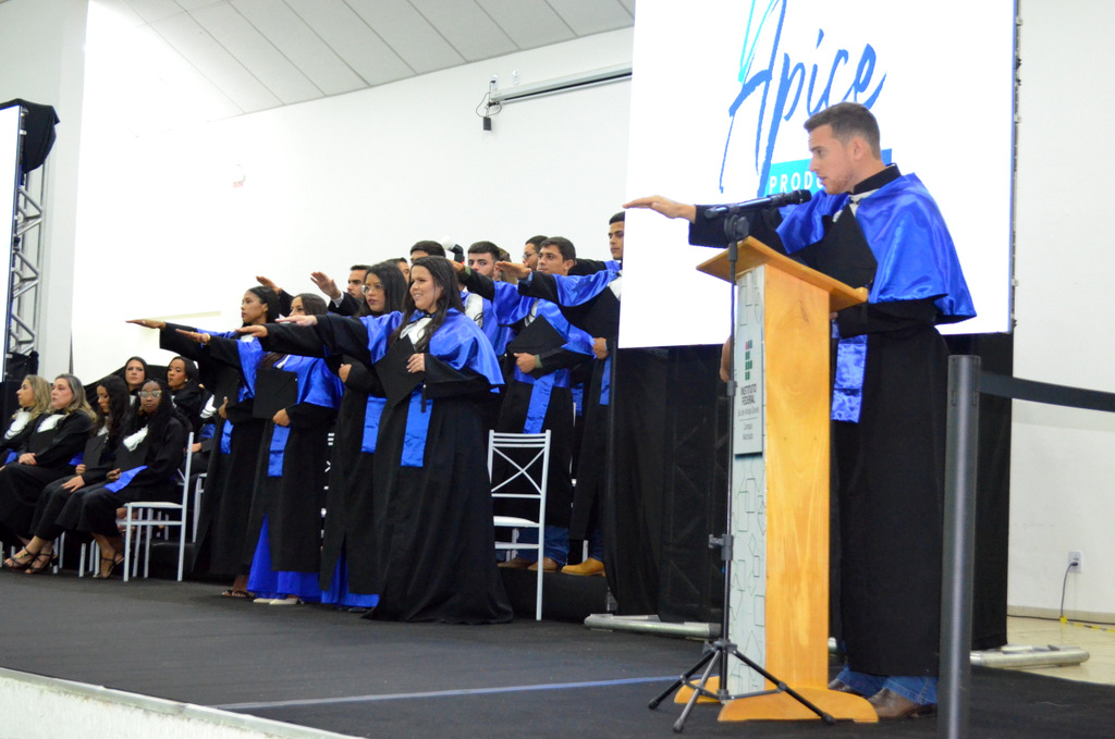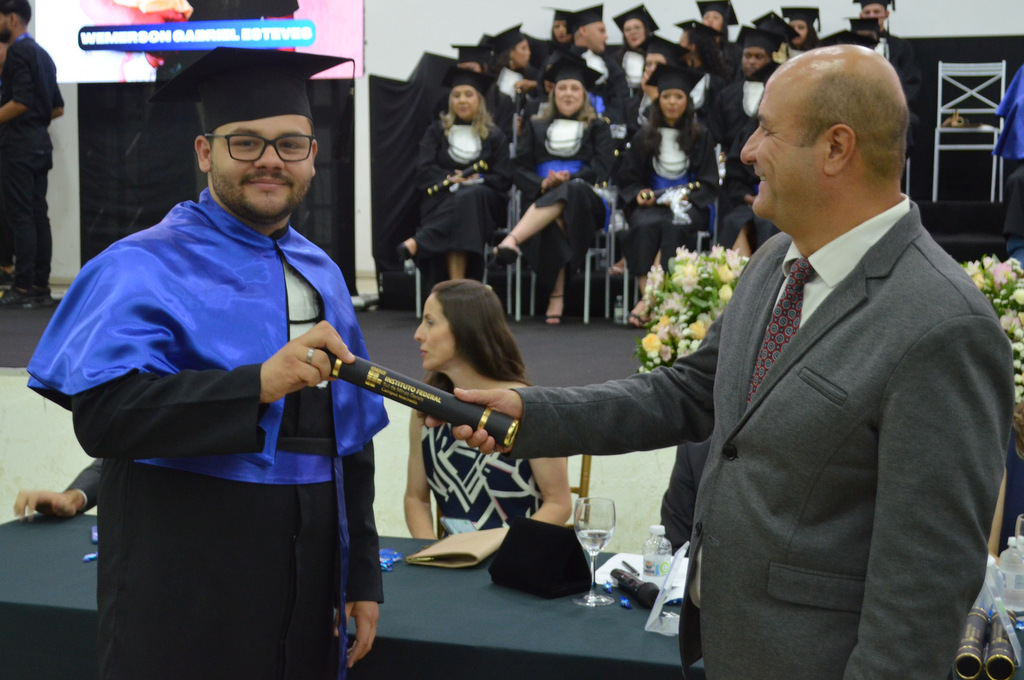 Durante a cerimônia, os formandos realizaram o juramento solene e tiveram seus títulos oficialmente conferidos pelo reitor. Em seguida, foram entregues certificados de Honra ao Mérito e de Mérito Acadêmico aos estudantes que se destacaram pela dedicação, desempenho e participação em atividades institucionais.
