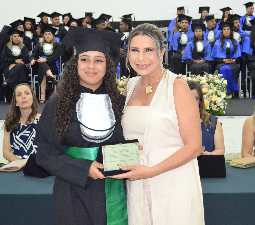 “Reforço que, além da qualidade do ensino aqui entregue e hoje concluído, nessa noite tão importante, o IFSULDEMINAS também é a melhor instituição em termos de eficiência orçamentária. Temos o menor custo de aluno por matrícula equivalente. Sintam orgulho da instituição que vocês estão formando hoje, meninos.” Ela enfatizou ainda que esse feito não se constrói sozinho, registrando seu agradecimento à Reitoria, aos servidores e colaboradores que contribuem para esses resultados.