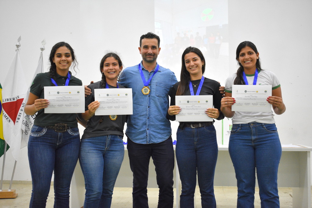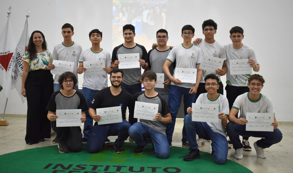 Também foram destacados os coordenadores dos cursos integrados Rafaela Eloi de Almeida, Augusto Márcio da Silva e Vanderlei Almeida, além dos servidores Gabriel Ribeiro e Ana Luiza Macedo, cujo suporte técnico foi fundamental para o sucesso da feira.