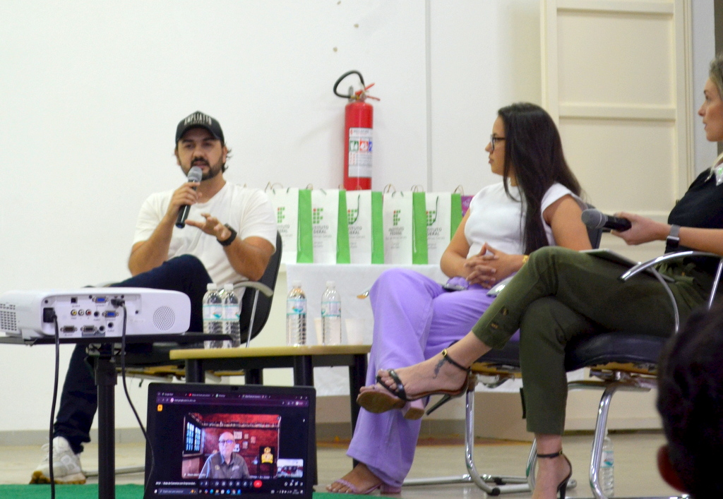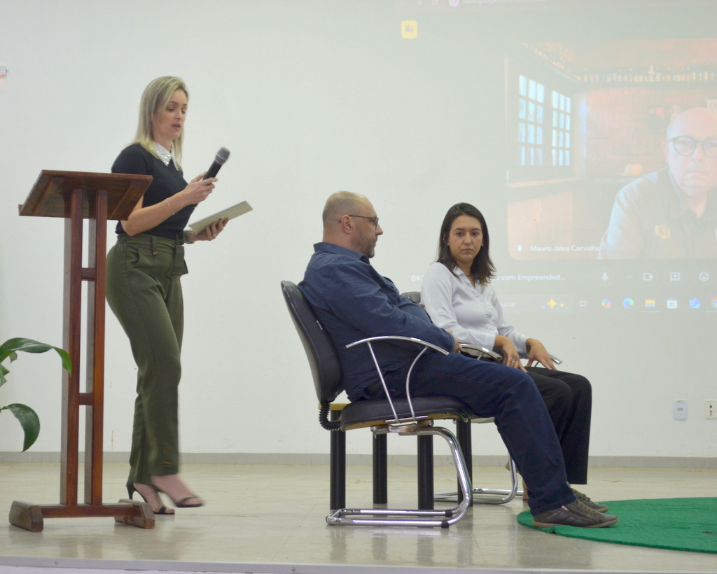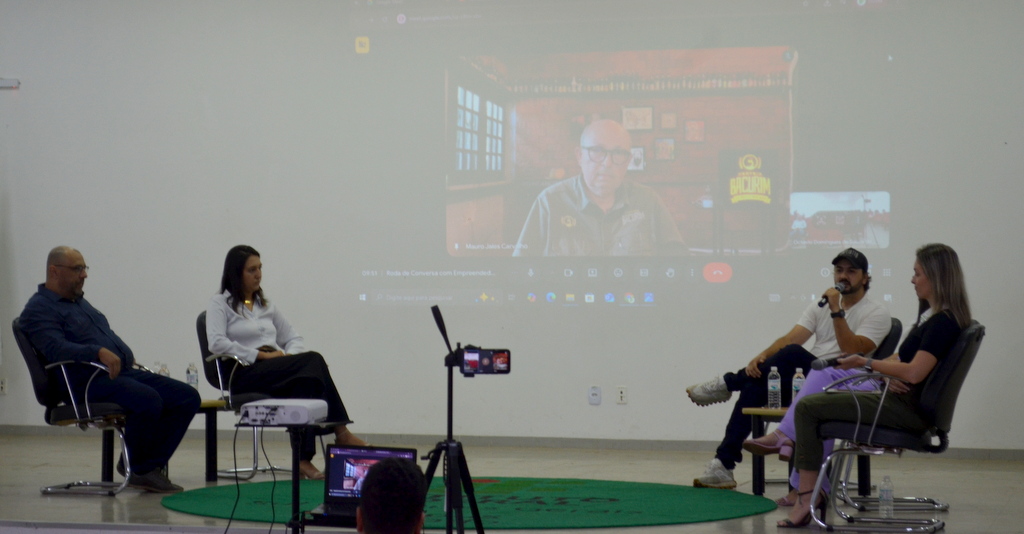 A abertura do evento foi conduzida pela diretora-geral do Campus, professora Aline Manke, que deu as boas-vindas aos participantes. A roda de conversa reuniu os empresários Thaís Vitória Taveira (Casa do Juca – Pet Shop), Dênis Antônio Rocha (Supermídia Comunicação Visual), Caio César Caixeta (Ampliatto Café), Gilberto Carvalho (Cervejaria Bacurim) e Maria Eduarda Fernandes (Personal Beauty). Eles compartilharam experiências de gestão, trajetória profissional e visão sobre oportunidades de negócio na região.