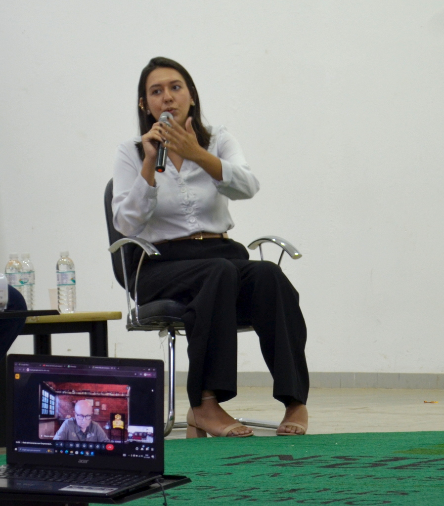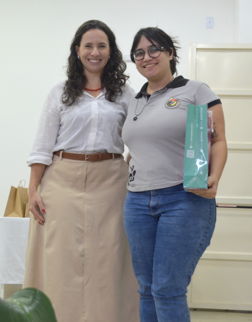 A estudante Thaís Vitória Saldanha Taveira, que está concluindo o curso de Zootecnia, participou da roda de conversa apresentando sua experiência à frente da Casa do Juca, seu empreendimento na área pet. Para ela, retornar ao Campus Machado como empreendedora foi um passo importante para o próprio crescimento profissional, reforçando sua convicção de estar no caminho certo. Thaís destacou que trabalhar em um pet shop exige preparo técnico e emocional, já que envolve o cuidado direto com animais, seres imprevisíveis e que demandam atenção, paciência e responsabilidade.