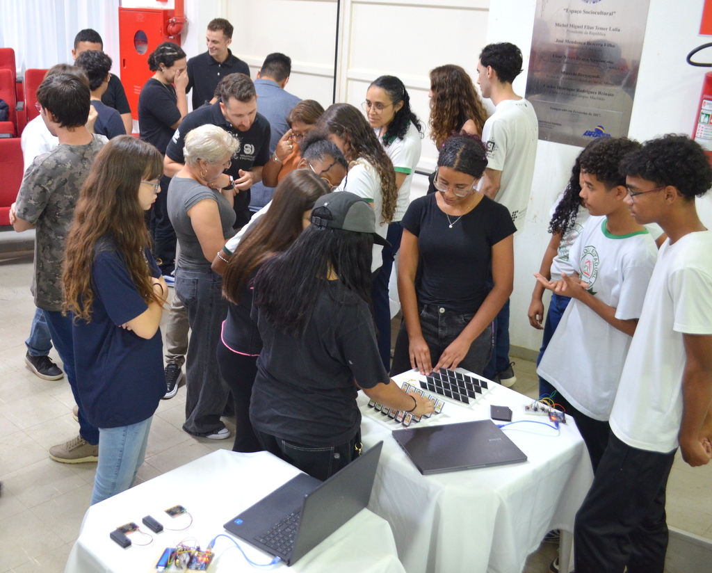 A cerimônia, realizada no Espaço Sociocultural do campus, reuniu representantes das escolas beneficiadas, autoridades municipais, bolsistas e coordenações do projeto, que celebraram a chegada dos novos ambientes formativos, espaços onde estudantes poderão aprender ciência e tecnologia “com a mão na massa”, utilizando ferramentas como impressoras 3D, kits de robótica e materiais de prototipagem.
