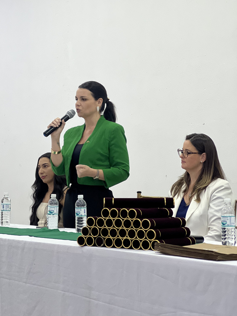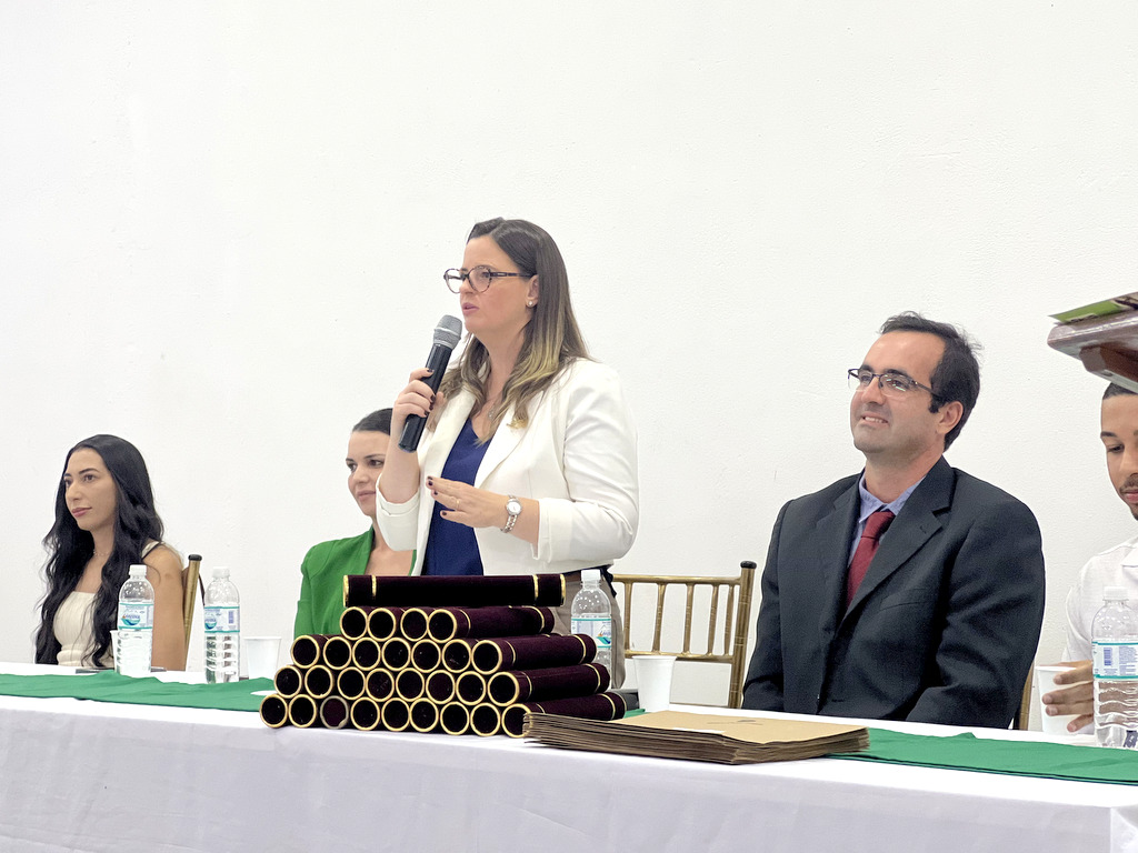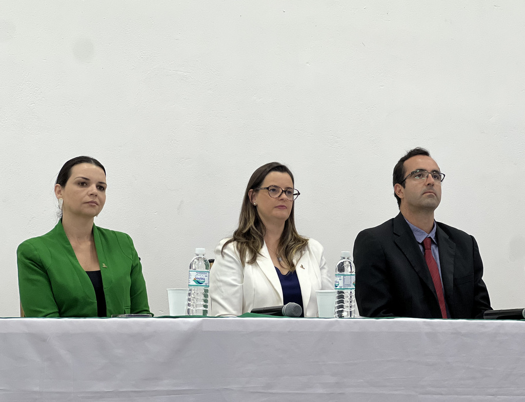 A mesa de honra da certificação foi composta pela professora Aline Manke, diretora-geral do Campus Machado; pela professora Daniela Ferreira Cardoso, pró-