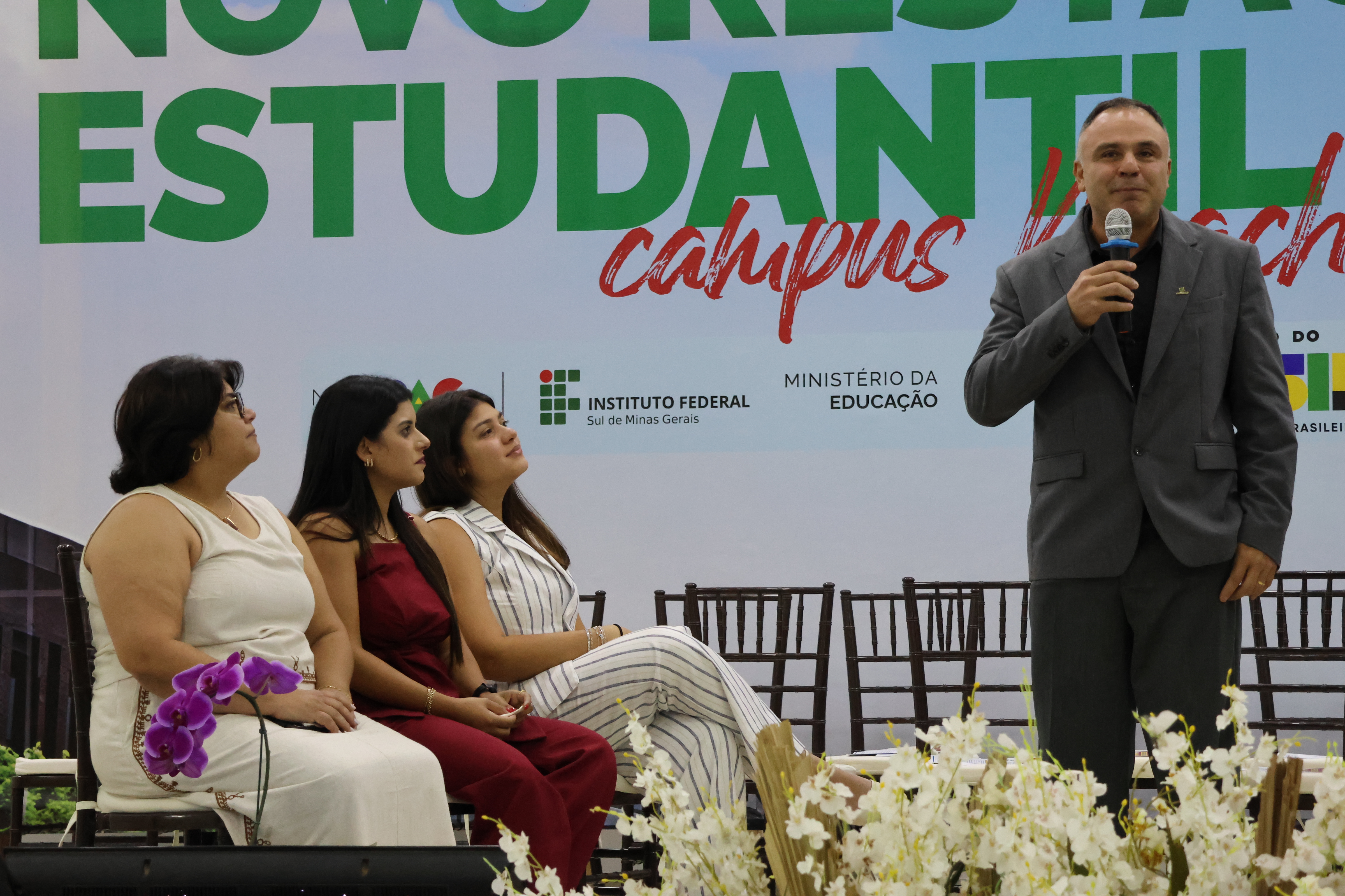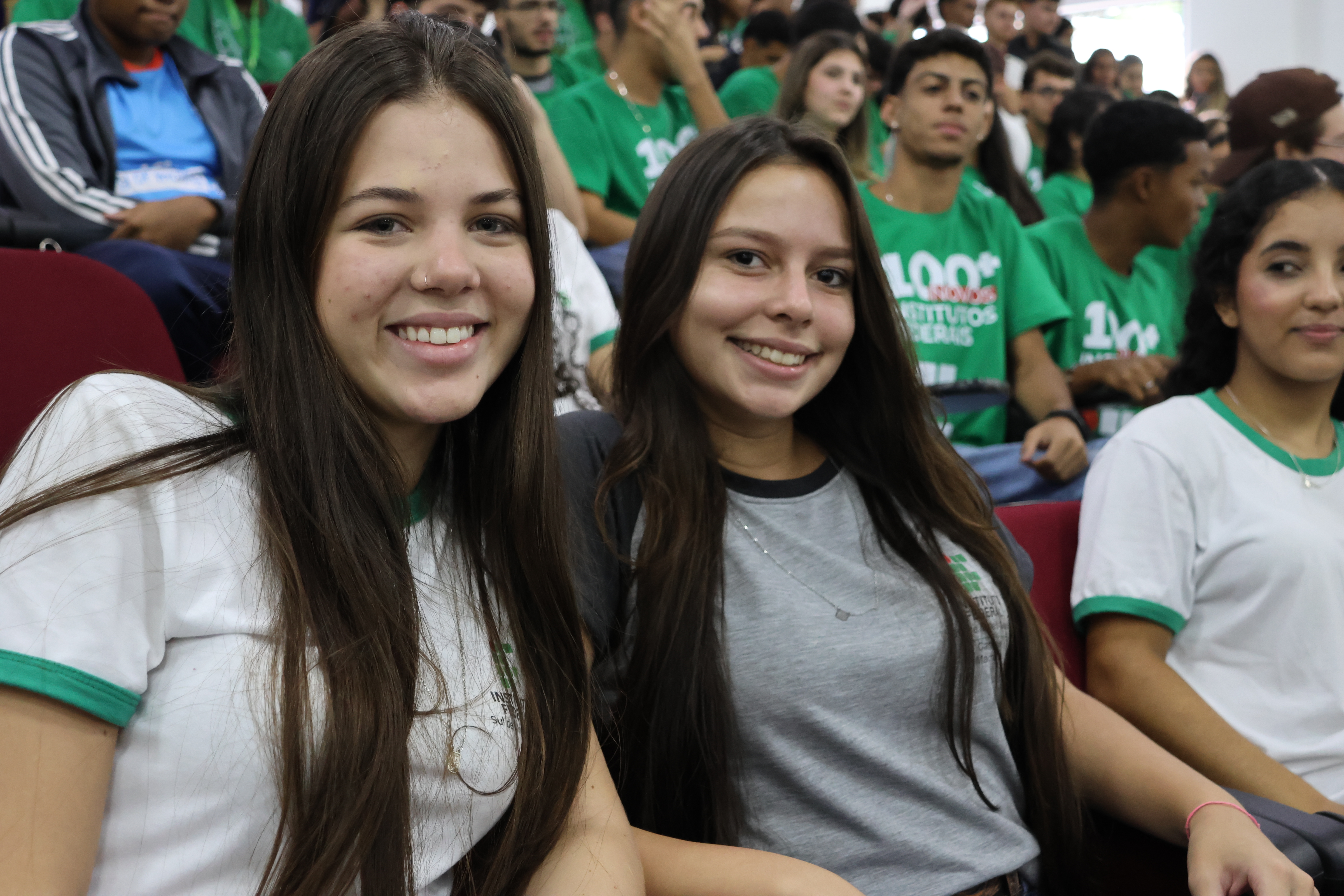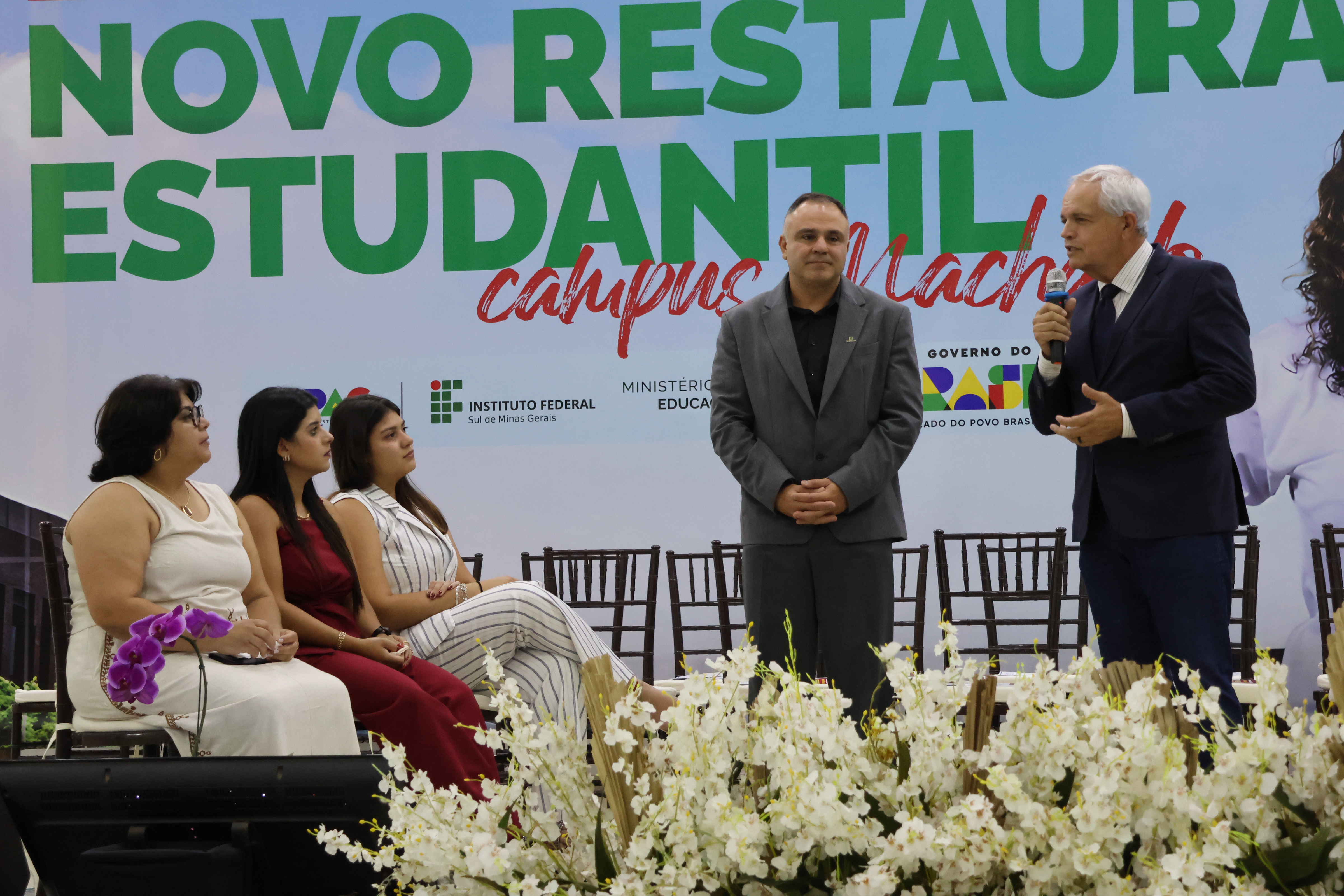 Dois estudantes do Campus Machado, Hyuri Alves, do curso Técnico em Alimentos, e Amanda Carvalho Ferreira, do curso superior em Agronomia, foram convidados a compor o palco ao lado do ministro e das demais autoridades. “Eu, como aluna do IF há 4 anos, fico muito feliz em poder representar os alunos neste momento especial. Com certeza, a inauguração desse novo espaço vai otimizar nosso tempo na rotina corrida e também