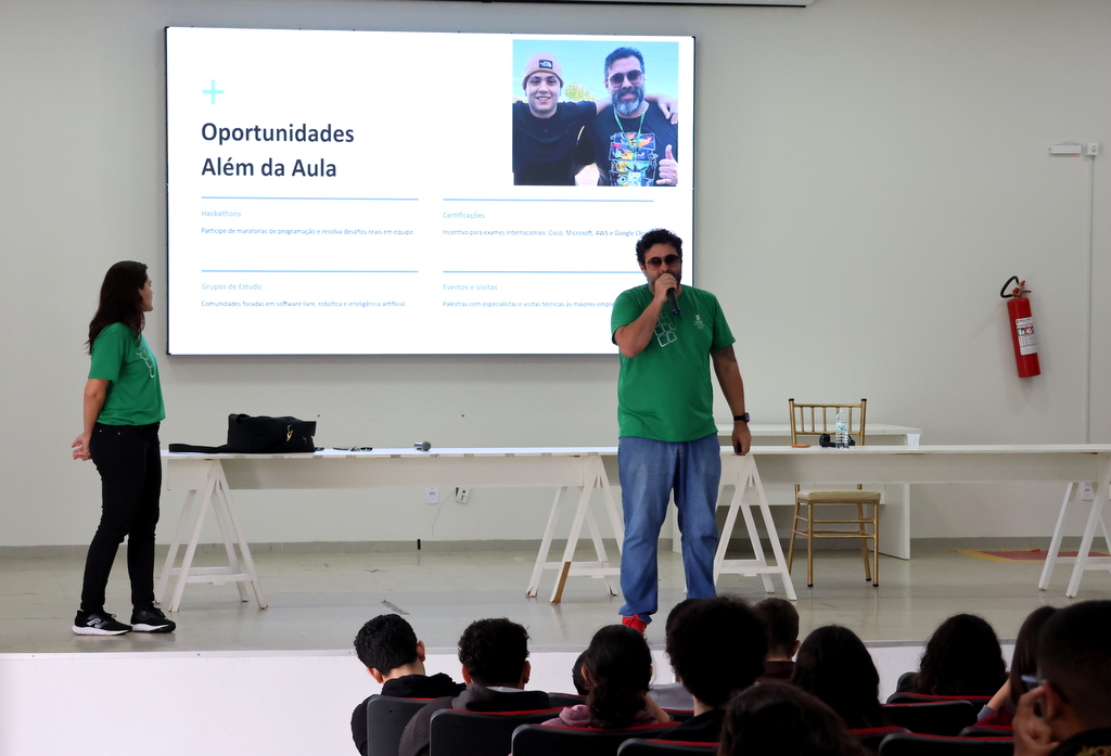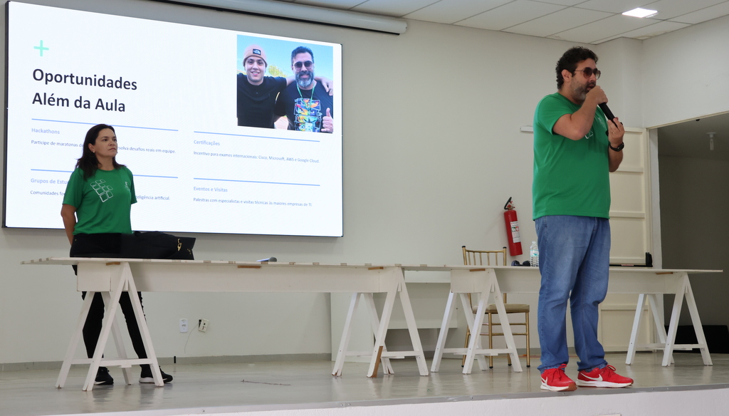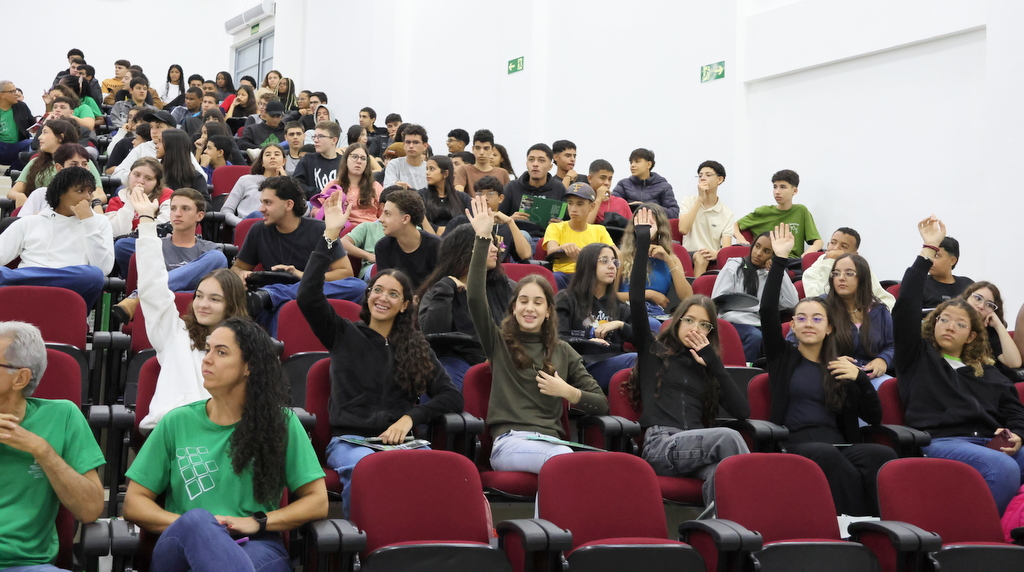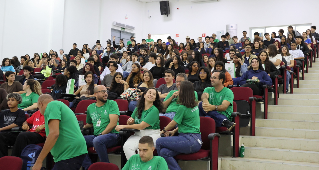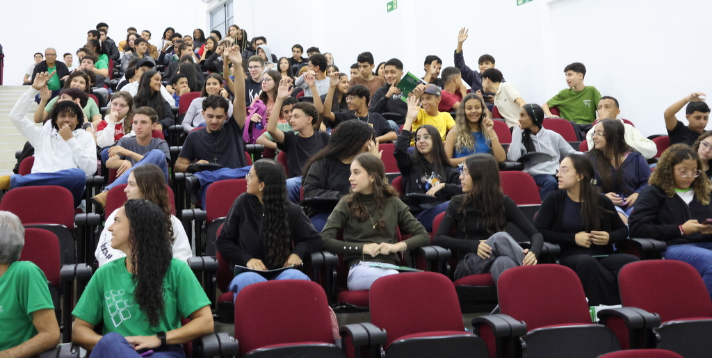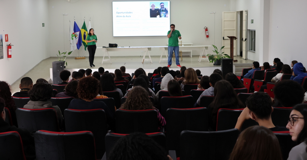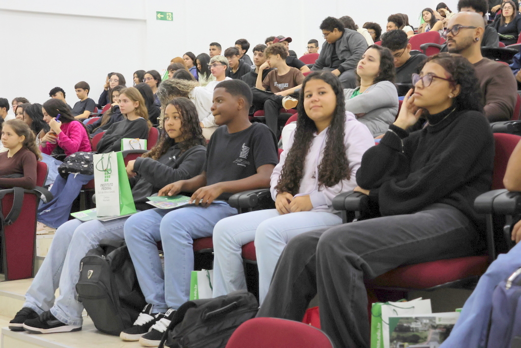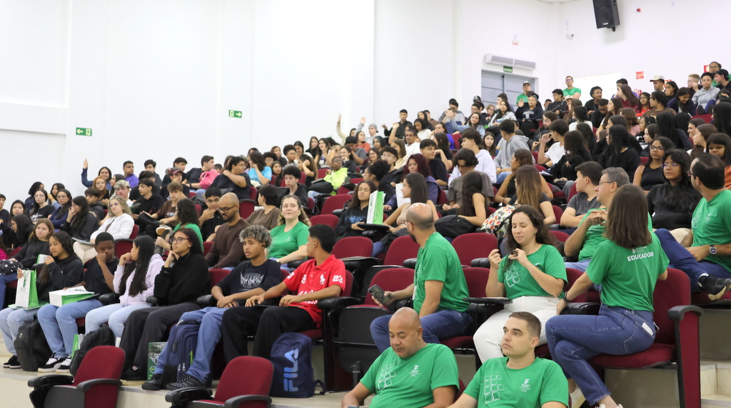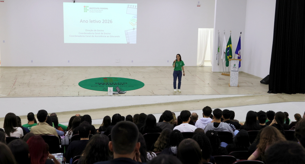A programação de acolhimento foi concluída na quinta-feira (12) com um momento de integração no Auditório Antônio Carlos, reunindo calouros e veteranos do ensino médio integrado. A atividade incluiu café especial, sorteio de brindes e um quiz institucional conduzidos pelas professoras Letícia Sepini (coordenadora de Eventos) e Fabiana Lúcio de Oliveira (diretora de Ensino). Na mesma data, a comunidade escolar participou de homenagem ao servidor Sérgio Santana e da solenidade de inauguração do novo refeitório, seguida de almoço especial aberto à comunidade acadêmica.